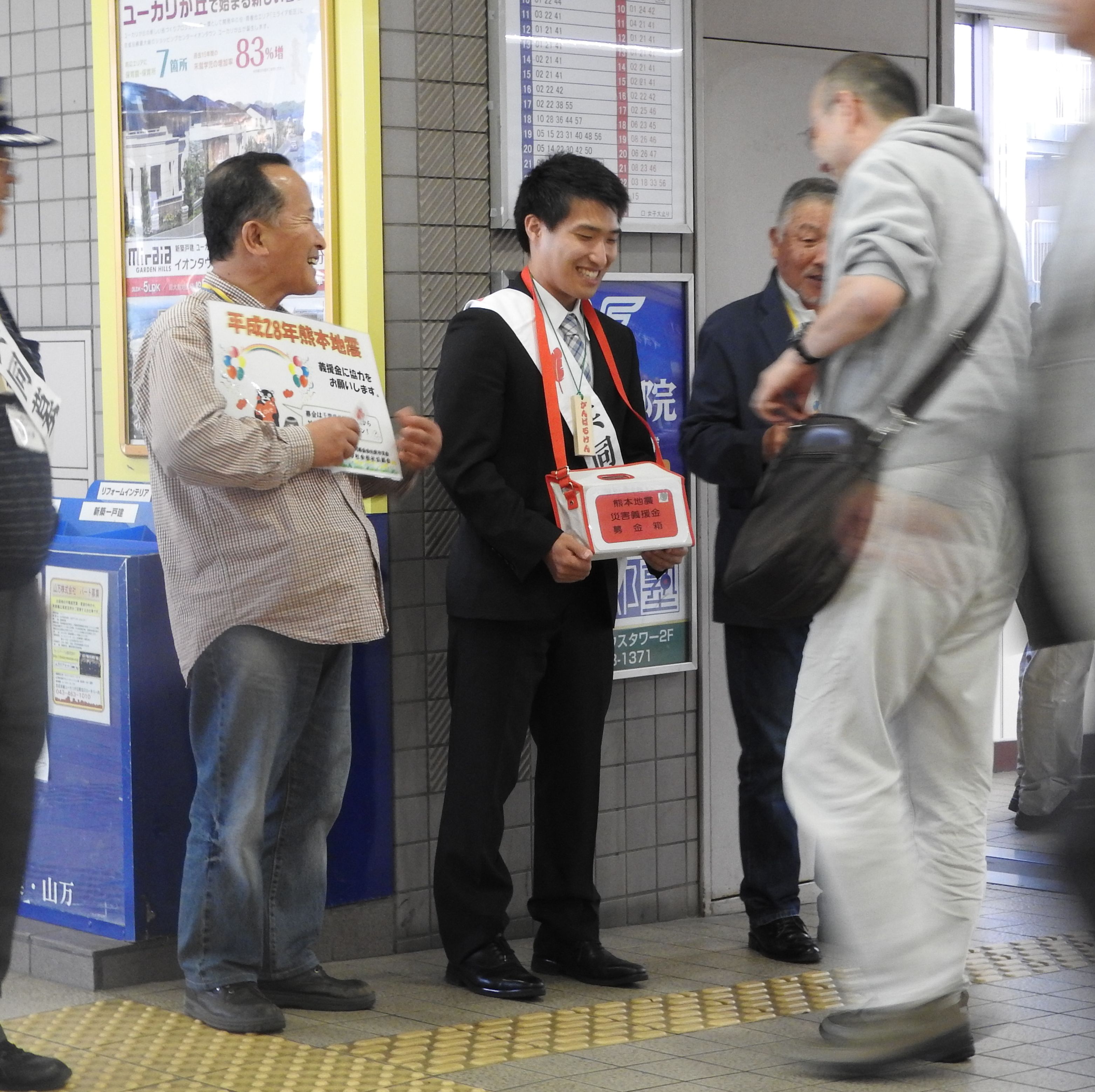4月14日と16日に発生した大地震で被害にあった熊本へ少しでも支援出来ればと、佐倉市社会福祉協議会の職員有志等で4月26日に京成佐倉駅とユーカリが丘駅で2時間の街頭募金をし、101,720円の温かい義援金が集まりました。