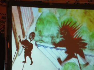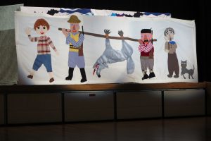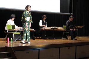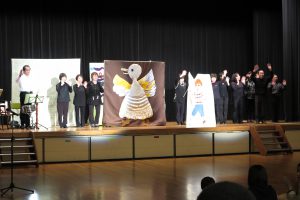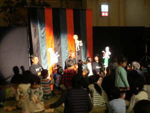 平成28年度、交流事業部最後の事業として3月25日(土)にお話フェスティバルを開催しました。今回は、絵本と音楽のマーブリングによる「ピーターとオオカミ」、影絵塾9による「三枚のお札」、語りとお琴と尺八のコラボで「花さき山」が上演されました。洋楽器と大型布芝居の絵本と音楽のマーブリングさん、幻想的な影絵塾9さん、和楽器と語りのコラボなどで小さなお子さんから大人まで楽しめる内容で163名もの多くの方に鑑賞していただきました。出演者、PTAのお手伝い、福祉委員のお手伝いの方々を含めると200名以上の方々が関わっていただいているお話フェスティバルです。